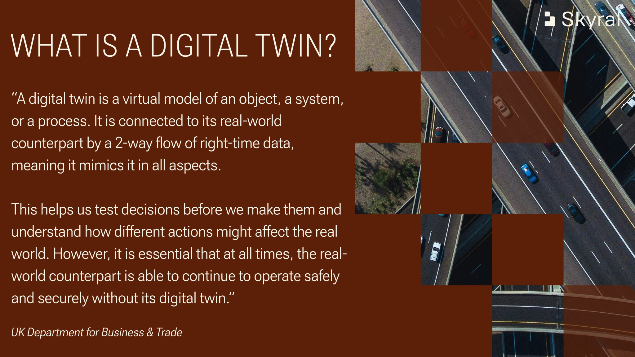 At Skyral we’ve been developing our Smart Cities platform to help decision-makers move beyond local interventions for urban mobility planning, and consider a more holistic approach. We’re doing this by leveraging our experience building strategic digital twins in critical decision-making contexts at city-wide and national scales.
